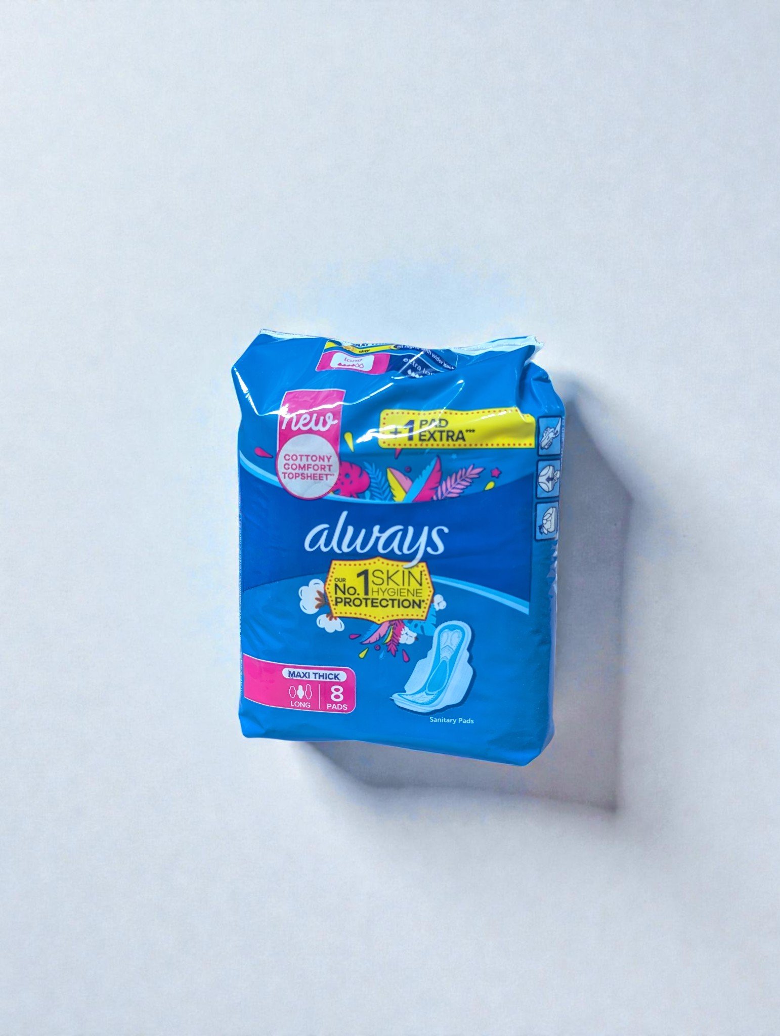 ALWAYS Maxi Long (Size 3) Thick sanitary pads, often sold in packs of 16, provide 100% leakage protection for heavy flow with a long design and, notably, anti-leakage barriers in the front, back, and center. Designed with stretchable wings to stay in place, they feature RapidDRY technology to lock in fluid instantly, offering up to 100% confidence.