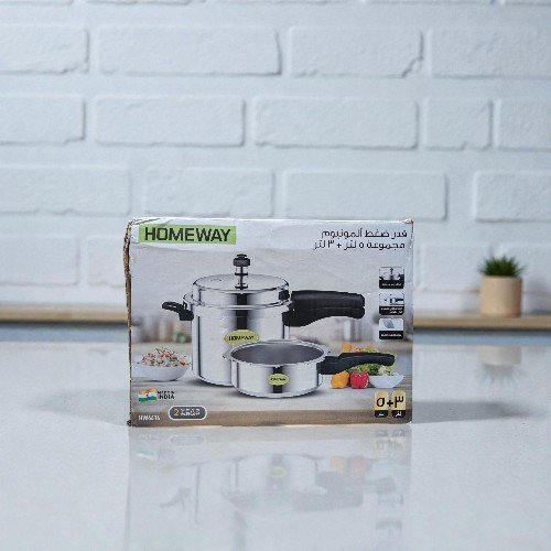HOMEWAY ALMNM PRESSURE COOKER 5L+3L COMBO-HW6614 is a pressure cooker designed to reduce cooking time while preserving food nutrients. Its sturdy construction and efficient pressure system make it ideal for everyday cooking.